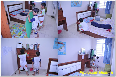 Semangat anak-anak saya bila mengemas, maklumla nanti nak ubah warna dinding bilik mereka kan?